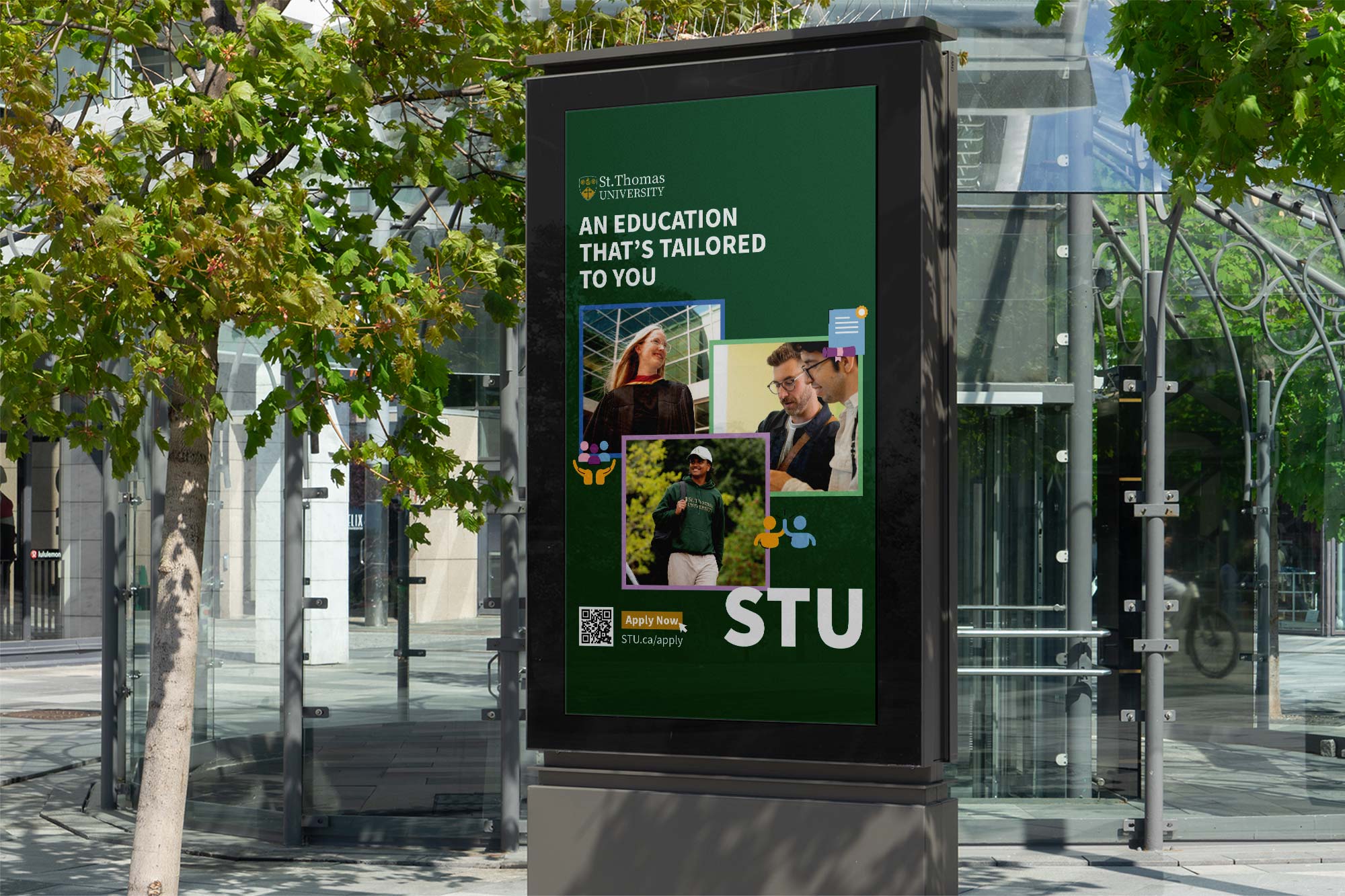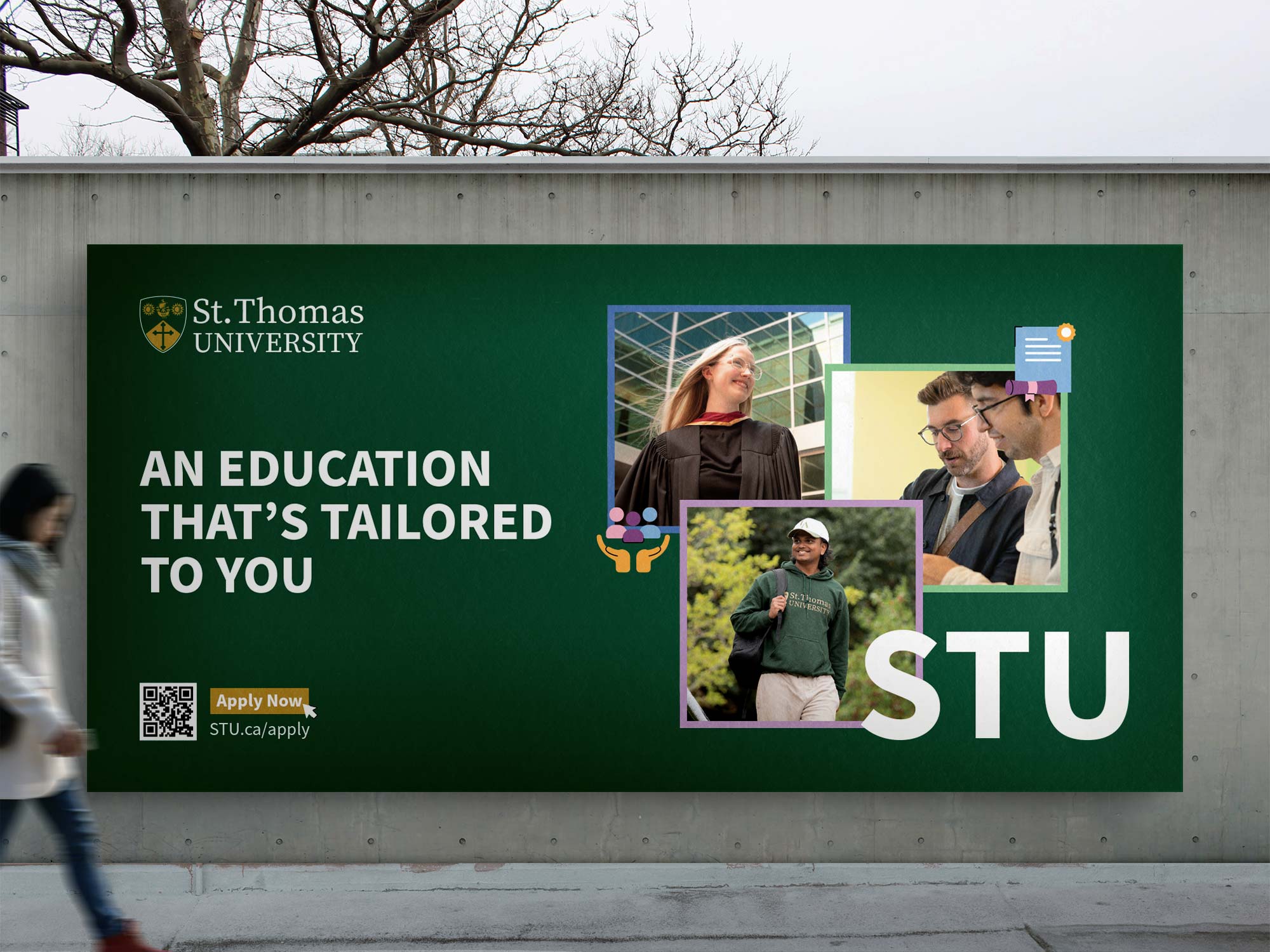 St. Thomas is a small University dedicated to excellence in liberal arts education. For their 2024/25 recruitment campaign, we created the “STU-niverse”—an illustrative representation of the inclusive and supportive campus experience. The visual approach was integrated across all collateral, including view books, tour brochures, digital assets, and out-of-home campaigns