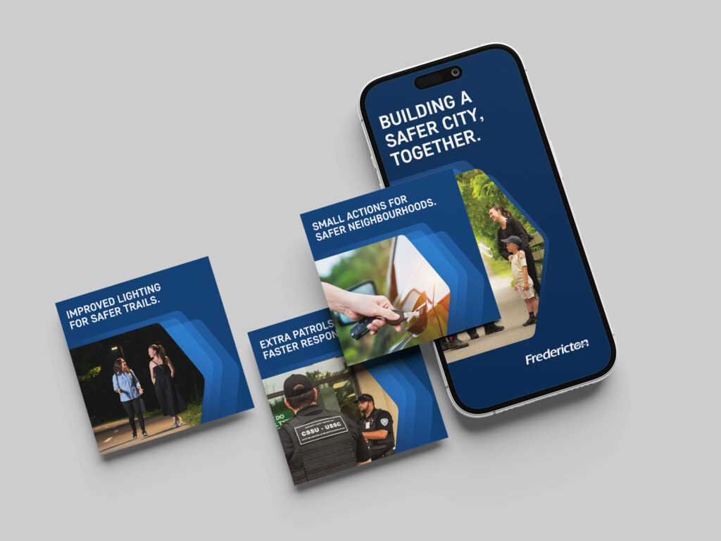 Earlier this year, The Details partnered with the City of Fredericton to develop a comprehensive communications strategy and public awareness campaign focused on community safety. Our goal was to help the City strike the right balance between empathy and enforcement, showing residents that safety is everyone’s shared responsibility and promoting the investments the City has made in in safety initiatives. We began by developing a strategy framework that outlined clear goals, messaging pillars, and key messages. We also designed a distinct look and feel for the City’s safety communications and developed a digital campaign: Building a Safer City, Together.